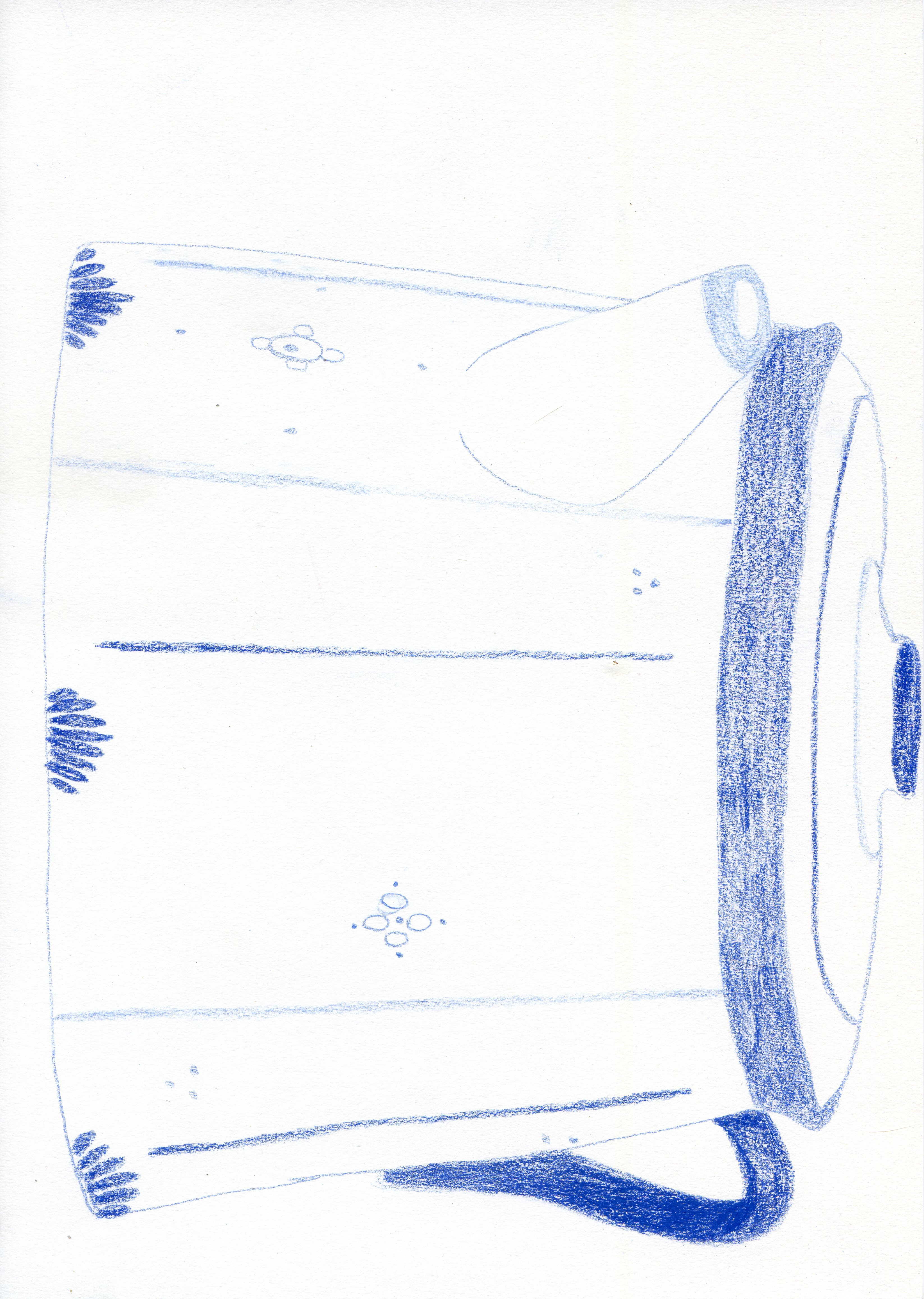 p.o.u.r.walkable teapot with cycle of paintings, drawings and text.